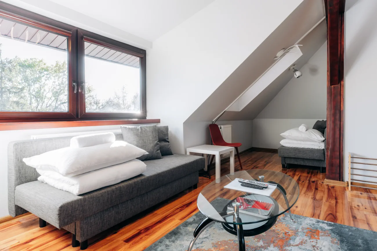 Szukasz miejsca, które łączy wygodę, nowoczesny design i relaksujące udogodnienia? Nasz 2-pokojowy apartament to idealna opcja dla rodzin, grupy przyjaciół czy par szukających niezapomnianego wypoczynku. Przestronne wnętrze, nowoczesne wyposażenie i możliwość dodatkowego wynajmu dostępu do strefy wellness z jacuzzi, sauną oraz grillami sprawiają, że Twój pobyt będzie pełen komfortu i relaksu!