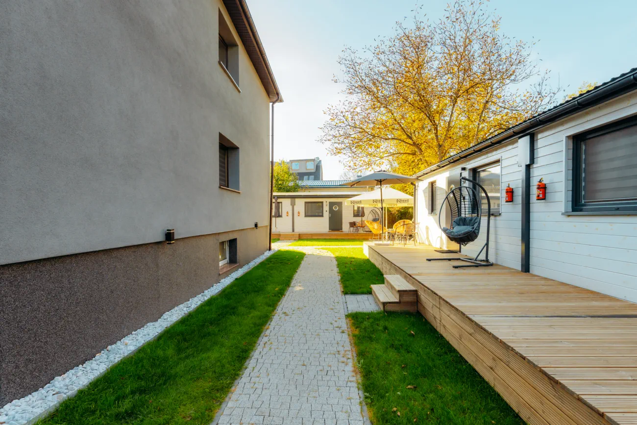• Możliwość wynajmu kilku domków obok siebie nawet ze wspólnym tarasem – idealne dla większych grup